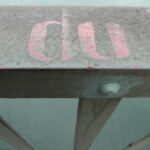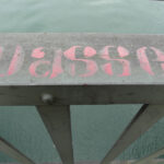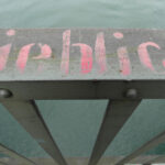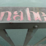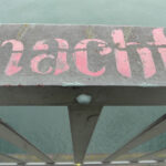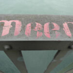Auf das Geländer der Eisenbahnbrücke in Mainz-Süd hat jemand (ich nehme an: eines Sommernachts) was geschrieben, in glühenden Farben, die dem Flußgrün in der Tiefe schmeicheln. Irgendwann ist jemand anders gekommen, gewiß bei Tag, hat am Brückengeländer die Vernietungen aufgefrischt und in Brückengrün überstrichen.