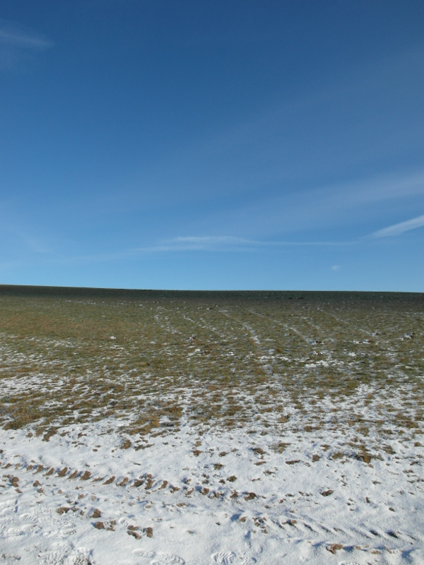 rs-horiz 7. Januar 2017 lakritze Verschneite Maschinenspuren auf dem Feld. Verwehte Maschinenspuren am Himmel.