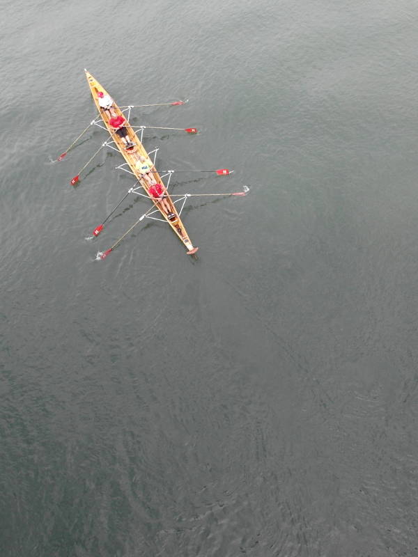 Das ist offenbar ein Fünfer, aus Holz, kein Rennboot, wie’s scheint, und damit recht exotisch.